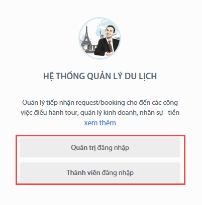 Bước 3: Tại trang Sản phẩm đã chọn, click vào nút “Quản trị đăng nhập” dành cho nhà quản trị và "Thành viên đăng nhập" là đanh cho thành viên.