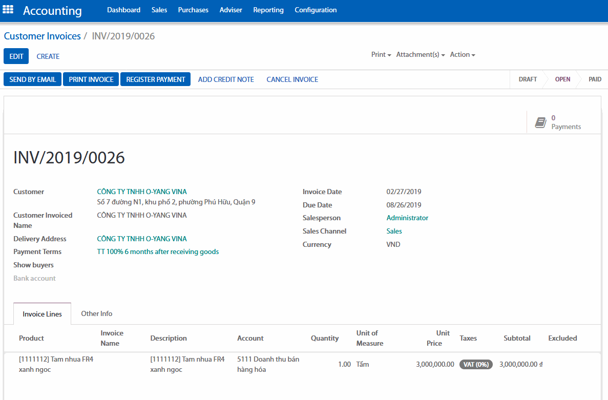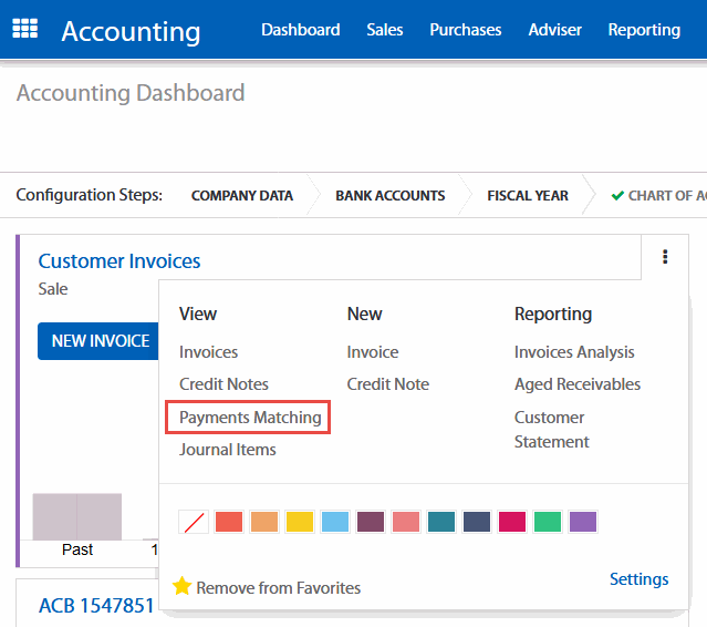 Trong mục Accounting (Kế toán), bạn có thể tạo một khoản thanh toán mới từ menu Sales (đăng kí vào một khoản thanh toán của khách hàng) hoặc menu Purchases (thanh toán cho nhà cung cấp). Nếu bạn sử dụng những bảng chọn này, khoản thanh toán sẽ không được kết nối với hóa đơn nhưng sau đó nó sẽ được đối soát với hóa đơn một cách dễ dàng.