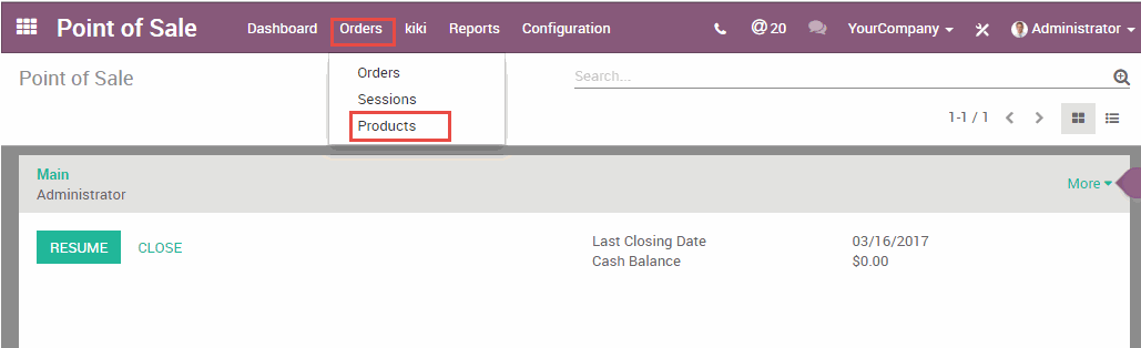 Nhấn lại vào nút Close (Đóng) của điểm bán hàng để thoát khỏi giao diện của điểm bán hàng. Dưới đây bạn có thể nhìn thấy được tổng quan các giao dịch của Điểm bán hàng