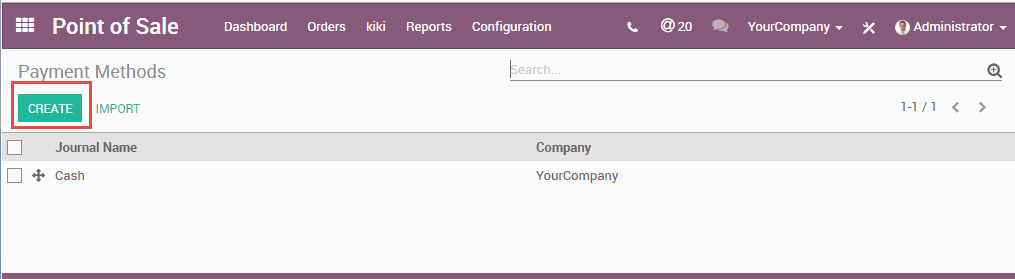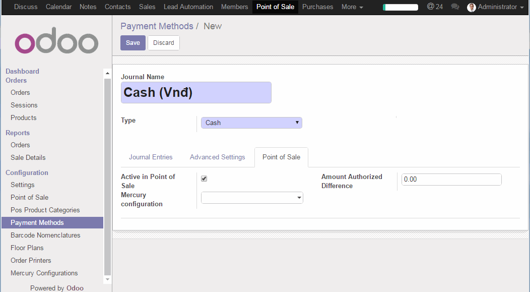 Để cấu hình cho một phương thức thanh toán vào phân hệ Point Of Sale (Điểm bán hàng)