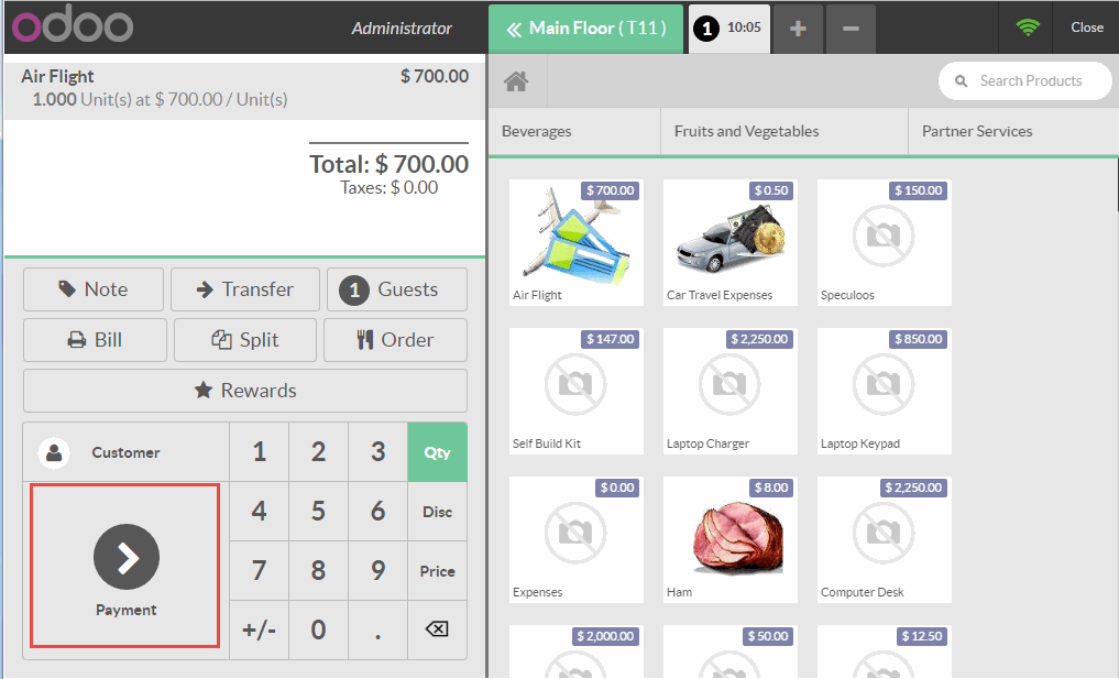 Khi đơn đặt hàng được hoàn thành, nhấn vào Payment (Thanh toán).