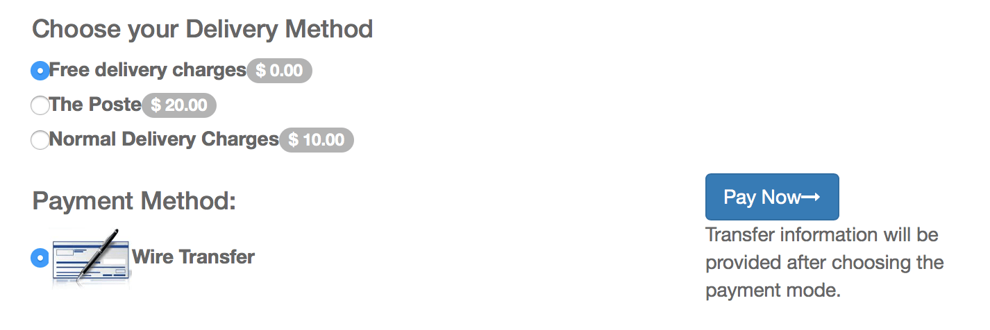 Nếu đến website và bạn thử mua một mặt hàng nào đó, một khi bạn đã nhập các chi tiết và tiến hành thanh toán thì website sẽ đề xuất cho bạn chỉ một hình thức giao hàng mà bạn chọn áp dụng cho địa chỉ giao hàng đó.