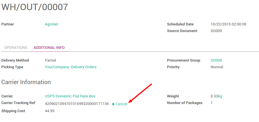 Odoo có thể xử lý nhiều phương thức giao hàng khác nhau bao gồm đơn vị vận chuyển thứ 3. Odoo sẽ đươc liên kết với hệ thống theo dõi của công ty vận chuyển.