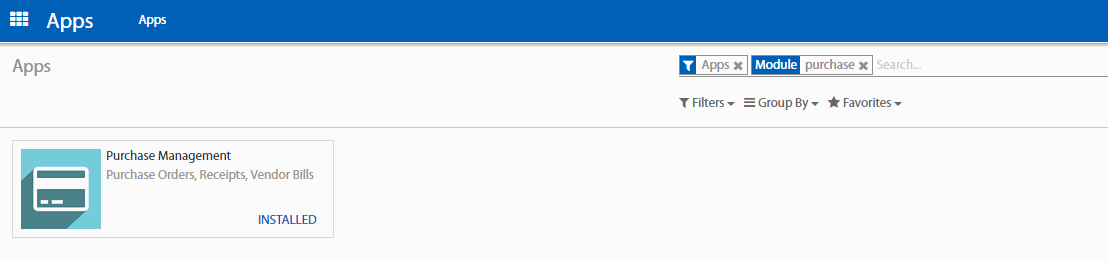 Bước đầu tiên để thiết lập nhà cung ứng cho sản phẩm của bạn là cài đặt Mô-dun mua hàng. Vào mô-đun Apps (Ứng dụng) và cài đặt mô-đun mua hàng.