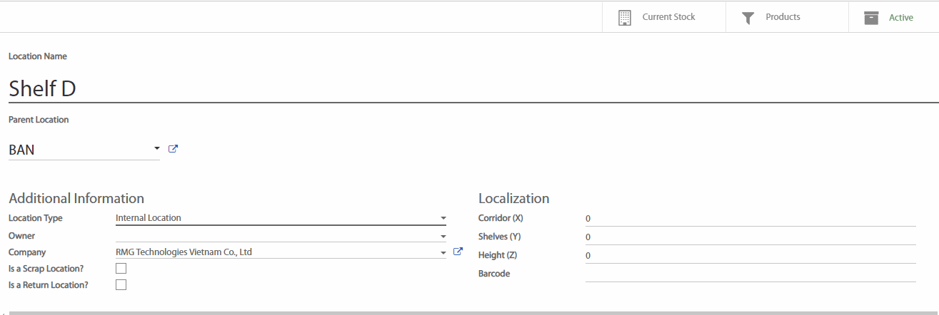 Bạn có thể thêm miêu tả cho địa điểm kho bằng cách điền thông tin trong trường Additional Information (Thông tin bổ sung).