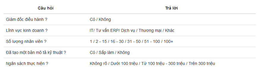 Nhân viên bán hàng bắt đầu bằng việc hỏi những câu hỏi được đề cập ở trên và chỉ sau đó vài phút anh/chị ấy có thể quyết định chuyển khách hàng này thành khách hàng tiềm năng bằng cách phân tích các câu trả lời của khách hàng.