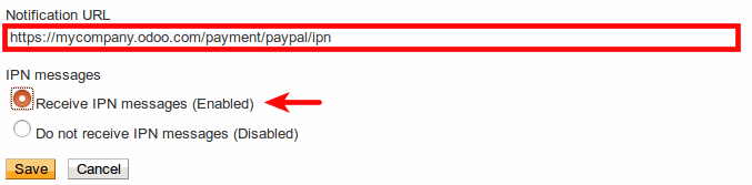 Nhập Notification URL: <odoo_instance_url> /payment/paypal/ipn