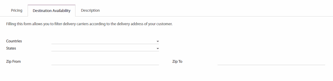 Cuối cùng bạn có thể giới hạn phương thức giao hàng đến một vài địa điểm đích. Giới hạn có thể được áp dụng đến một số quốc gia, tiểu bang hay cả mã zipcode. Tính năng này hạn chế danh sách đất nước trên thương mại điện tử.