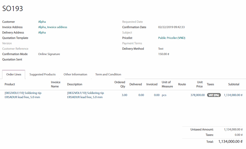 Giao hàng được tạo từ đơn bán hàng sẽ lấy các thông tin giao hàng từ đơn hàng đó.