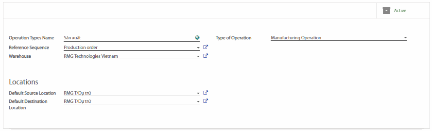Cần vào ứng dụng Inventory (Tồn kho), Configuration (Cấu hình) > Operations Types (Kiểu giao nhận) để chỉnh sửa hoặc tạo mới các quy tắc.