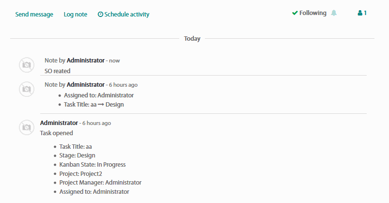 Bạn được tự động đặt làm người theo dõi mặc định của bất kỳ mục nào bạn tạo ra. Trong một số phân hệ như CRM và Project, bạn có thể là người theo dõi mặc định của bất kỳ bản ghi mới nào được tạo ra để nhận thông báo về các sự kiện quan trọng (ví dụ: một nhiệm vụ mới, cơ hội thành công).