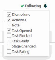 Bạn có thể chọn thể loại sự kiện nào bạn muốn được thông báo. Ví dụ dưới đây cho thấy các tùy chọn có sẵn khi theo dõi một task trong ứng dụng Project.