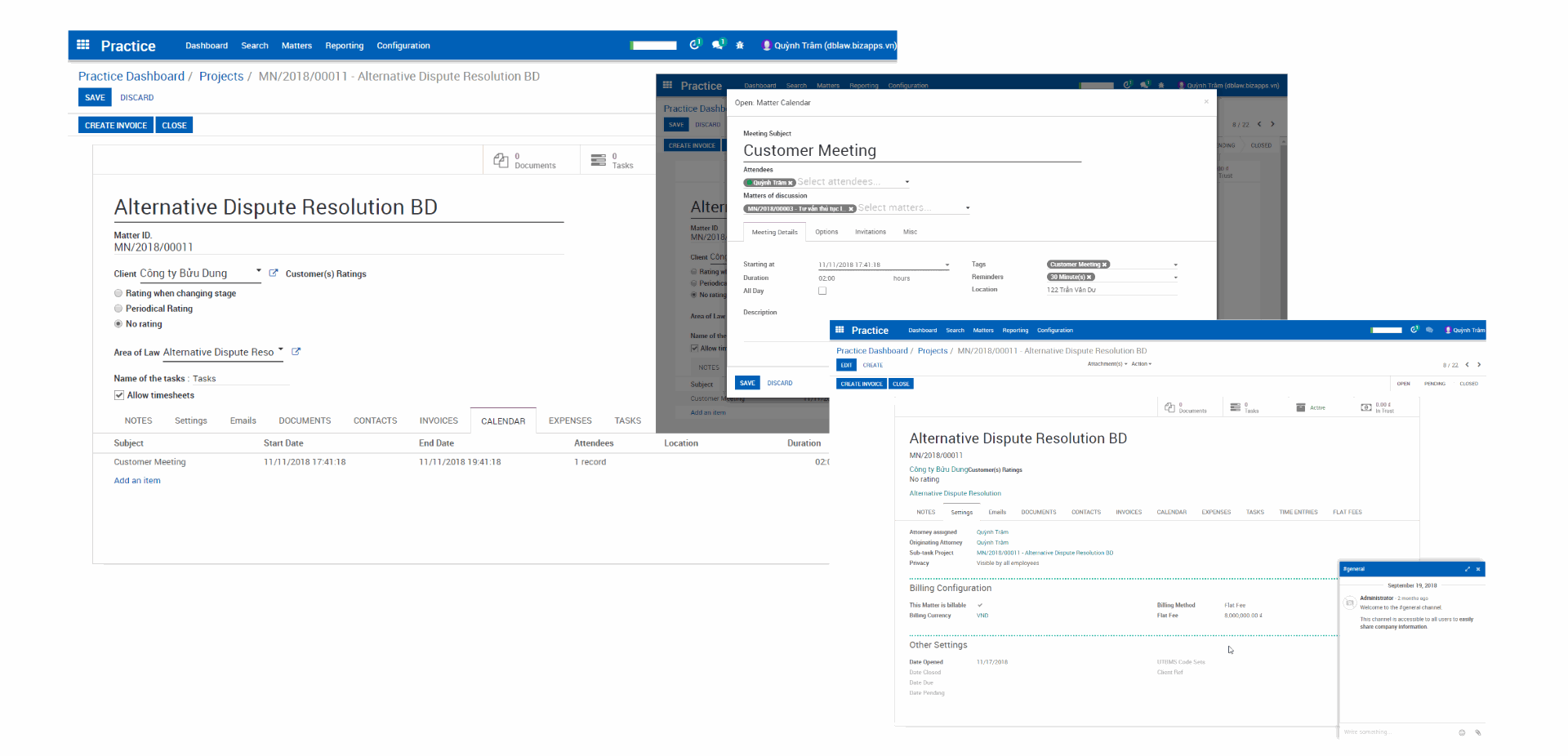 Hệ thống cho phép bạn trao đổi trên các đối tượng liên quan (vd: matter, KH, task…) giống như là các trao đổi và tương tác trên mạng xã hội.