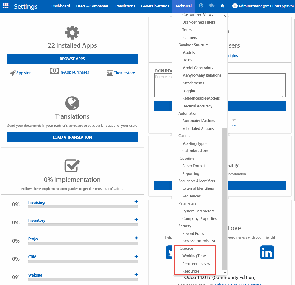 Sau khi đã hoàn thành cài đặt các ứng dụng, bạn hãy kiểm tra lại hệ thống bằng cách đi vào menu Settings (Thiết lập) > Technical (Kỹ thuật) > Resource (Nguồn lực), xem xét lại các lựa chọn cho công tác quản lý của bạn.