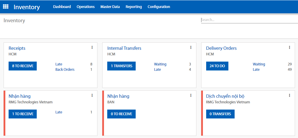• Nhận hàng và giao hàng theo nhiều bước có thể được cấu hình dễ dàng cho mỗi kho hàng.