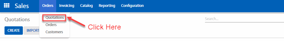 Vào ứng dụng Sales (Bán hàng) . Chọn Orders > Quotations (Đơn hàng > Báo giá) .