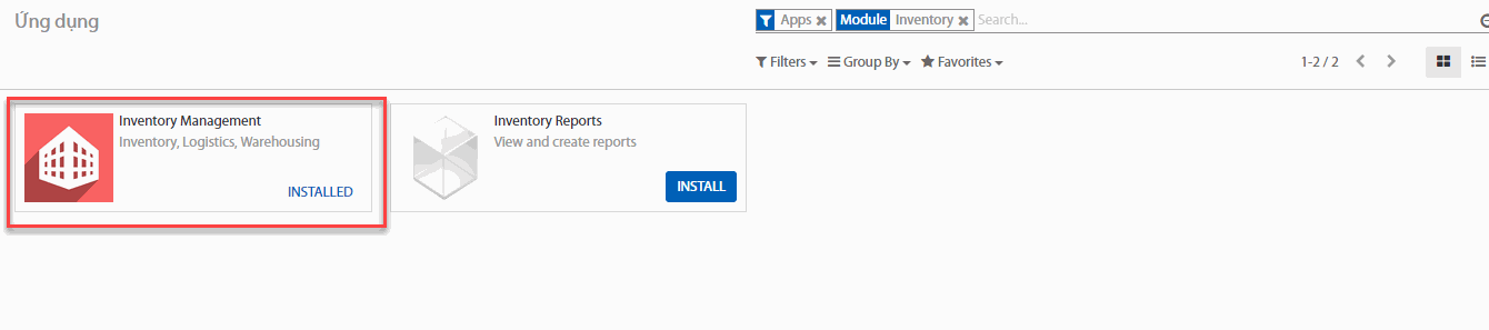 Từ menu App (Ứng dụng), tìm và thiết lập mô-đun Inventory (Tồn kho)