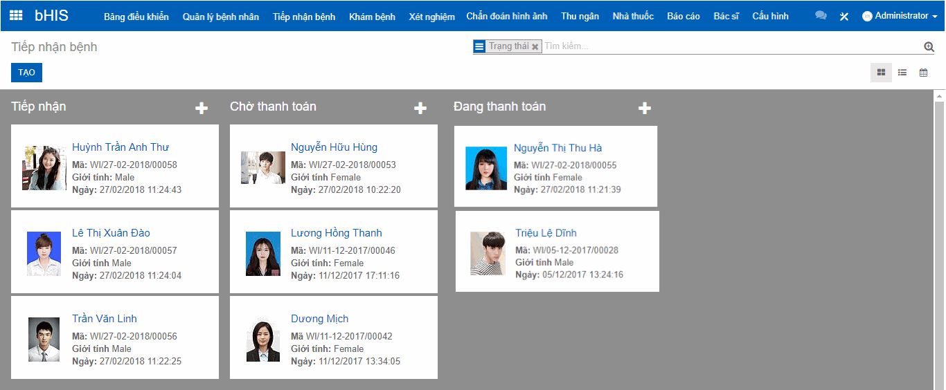Các thông tin hành chính như họ tên, số điện thoại, bệnh nhân liên quan và các thông tin khác của bệnh nhân chỉ cần nhập liệu một lần duy nhất tại phân hệ tiếp nhận. Mỗi bệnh nhân sẽ được cấp thẻ bệnh nhân làm cơ sở cho việc chia sẻ và truy tìm thông tin bệnh nhân trong nội bộ phòng khám. Hồ sơ bệnh án đều được lưu trữ giúp tiết kiệm thời gian khai báo hành chính cho những lần tái khám.